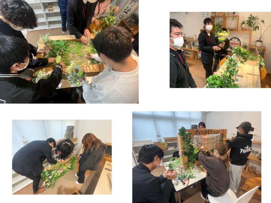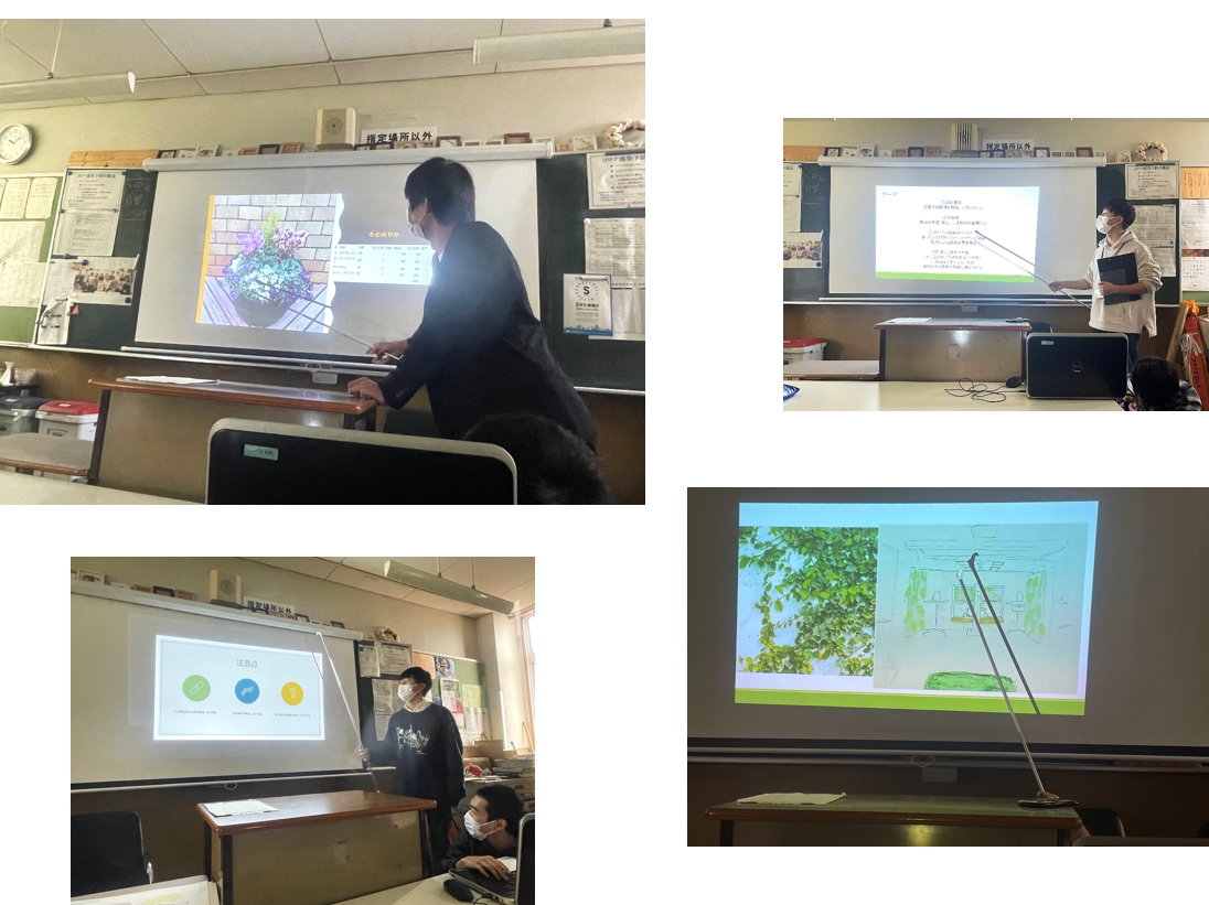 まずはグループに分かれて、園芸福祉的観点から学内の植栽を検討し、それぞれの計画をプレゼン発表しました!