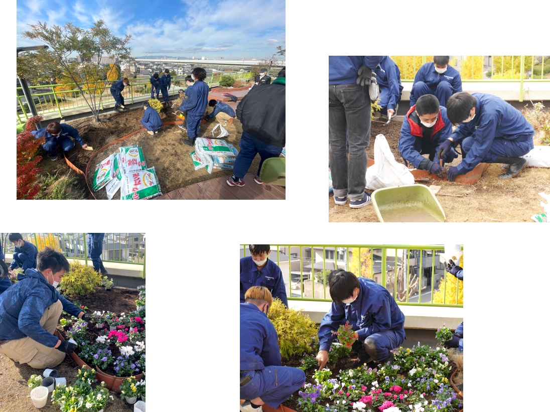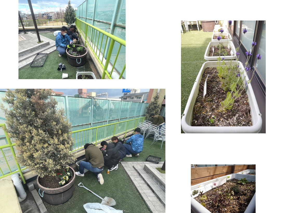 3月に卒業した学生たちが「園芸福祉」の実習で4ヶ月に渡り取り組んだ、5階屋上庭園、3階テラス、1階植栽の計画と施工をレポートします😉🍀