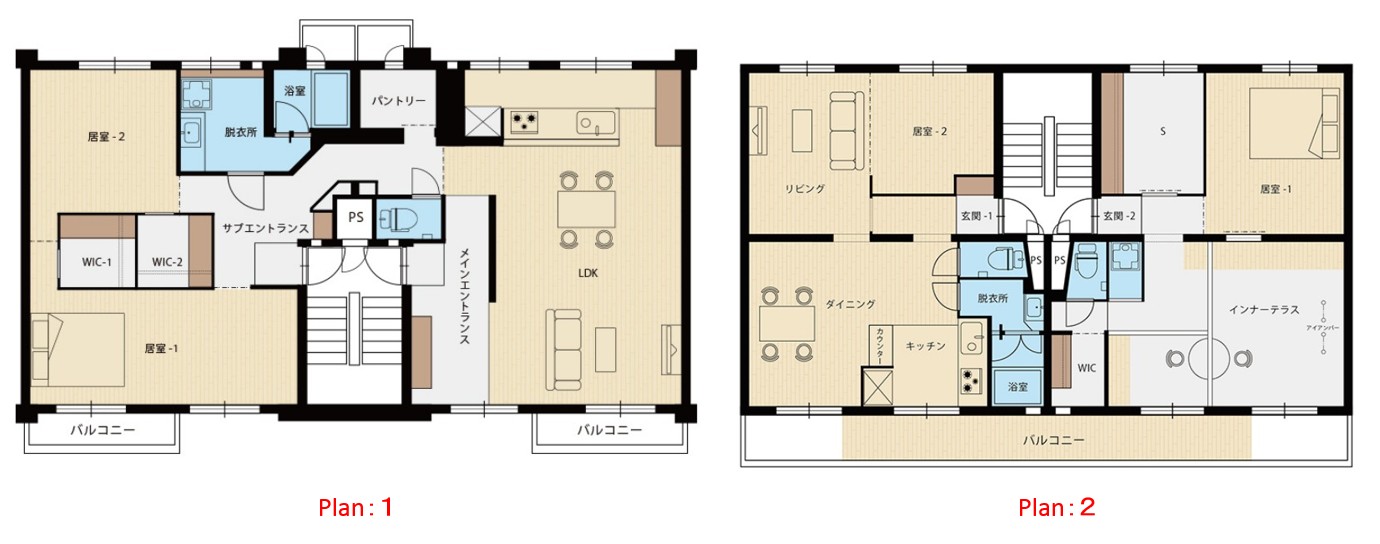 Plan2:家族を繋ぐインナーテラスがある家