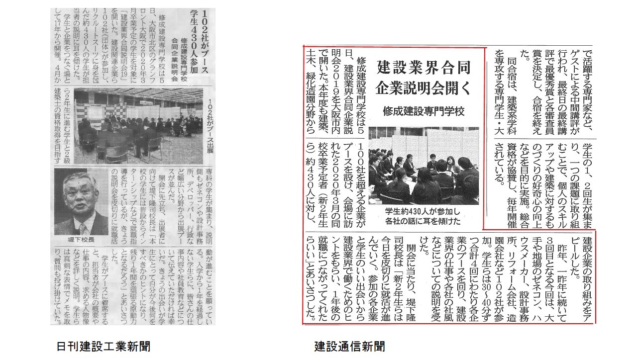 今回の「建設業界合同企業説明会」の内容が2紙の新聞に掲載されました。