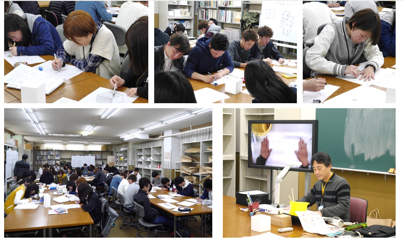 1回目の授業は「立方体」を線画で描くというもの・・・。