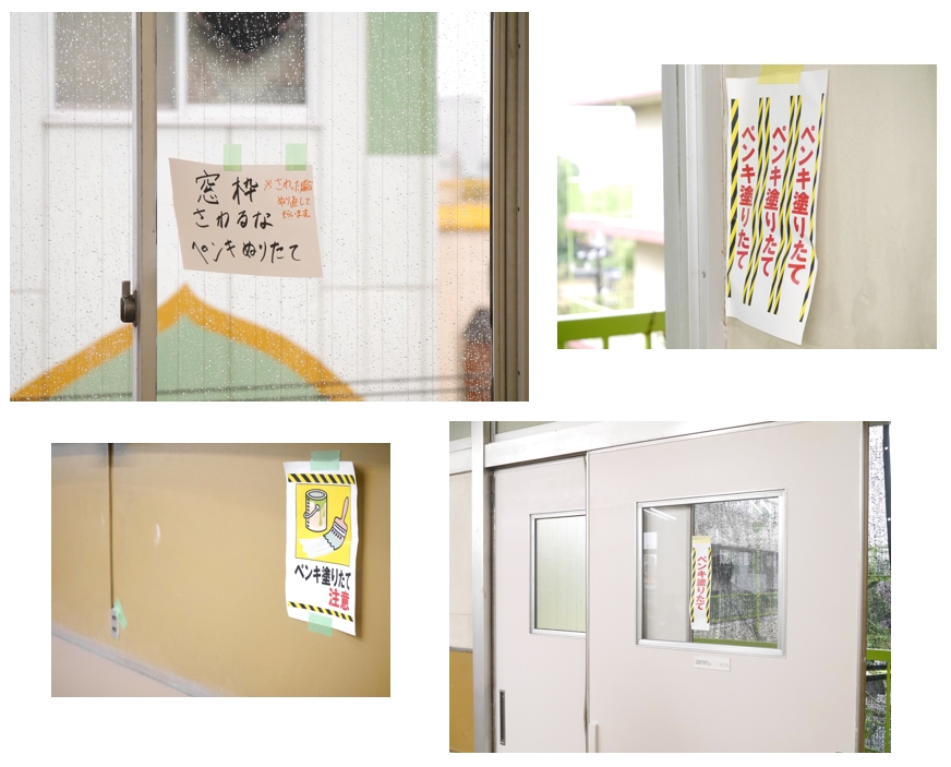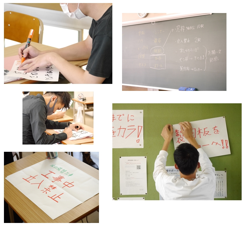 まずは施工前の準備の日。みんなで張り紙作成をしましたよ!