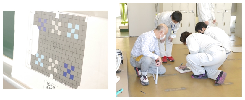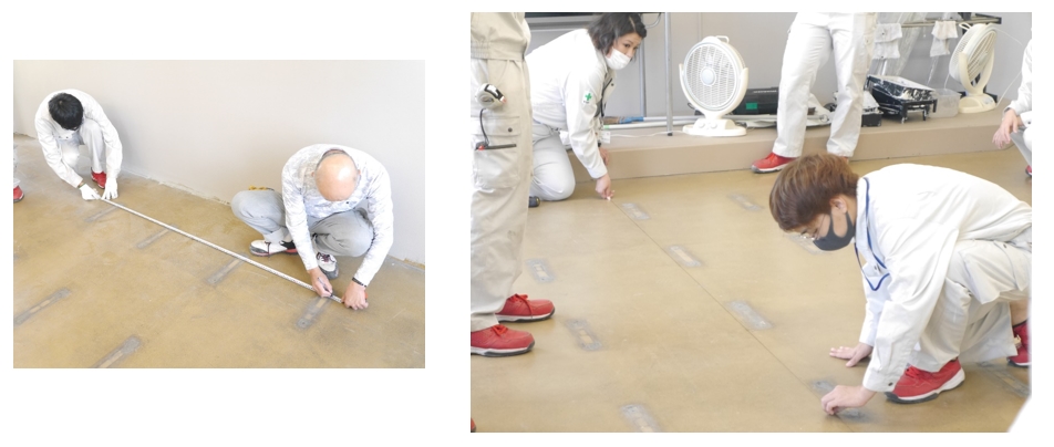 床は4色の正方形を敷き詰めて模様をつくるので、まずは模様の寸法確認から!