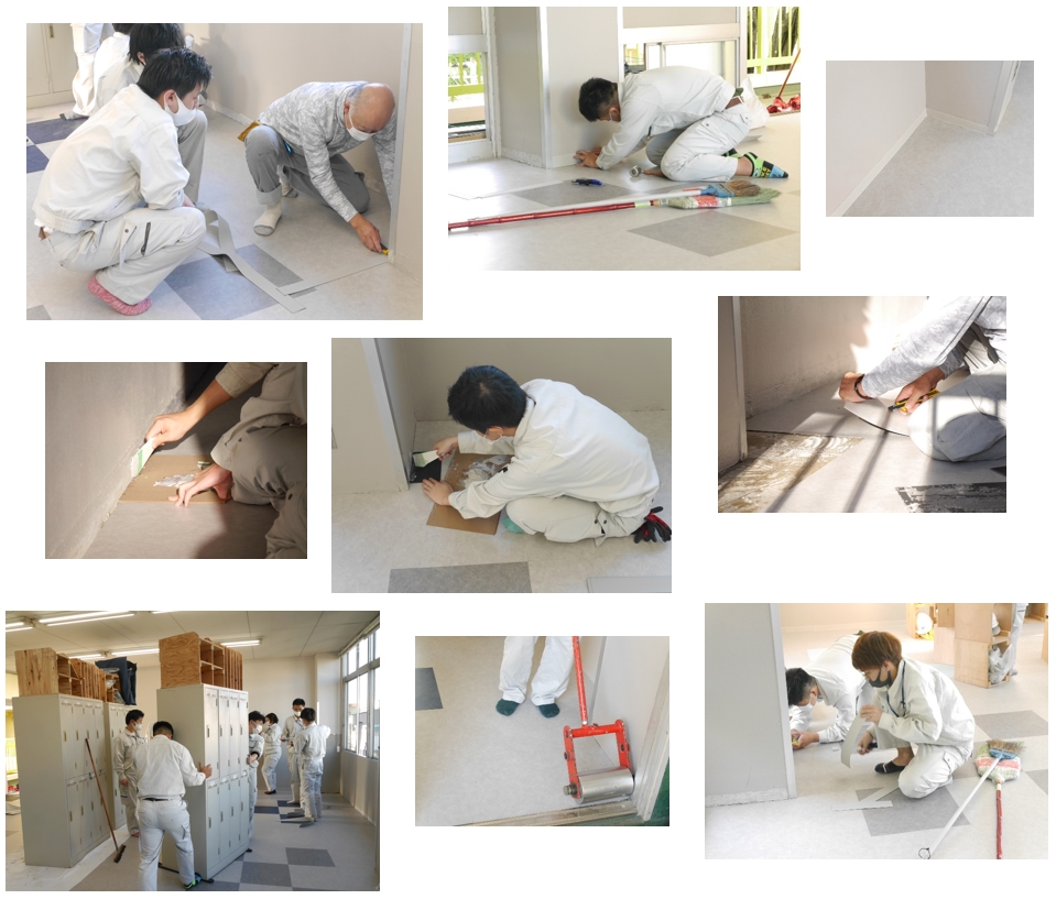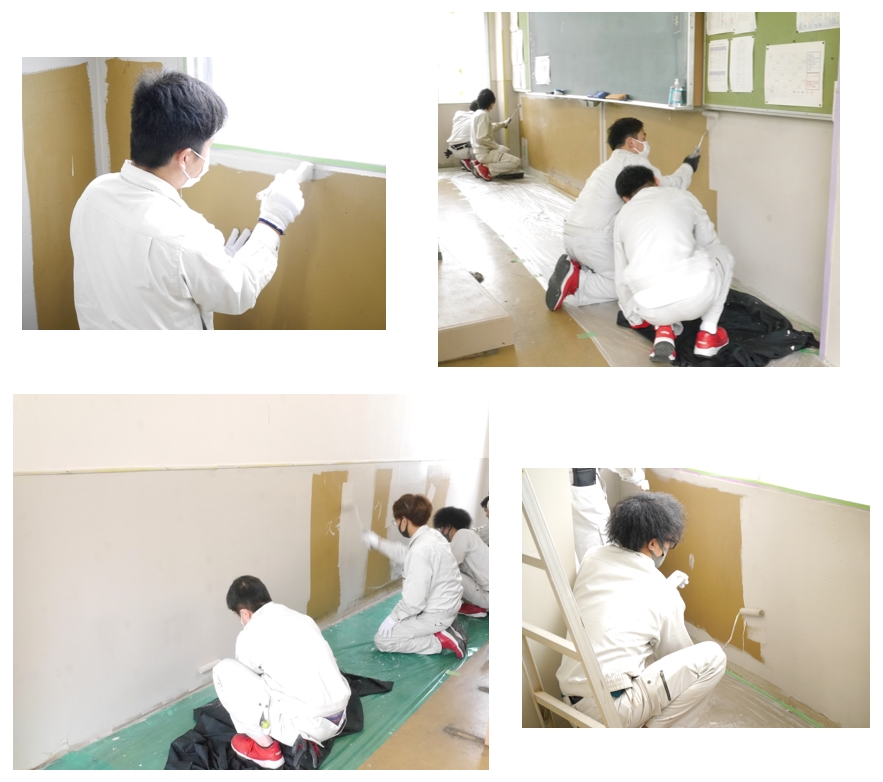 教室の端の細かい部分は、若井様に教えていただきながら、丁寧に作業を進めます(`・ω・´ゞ