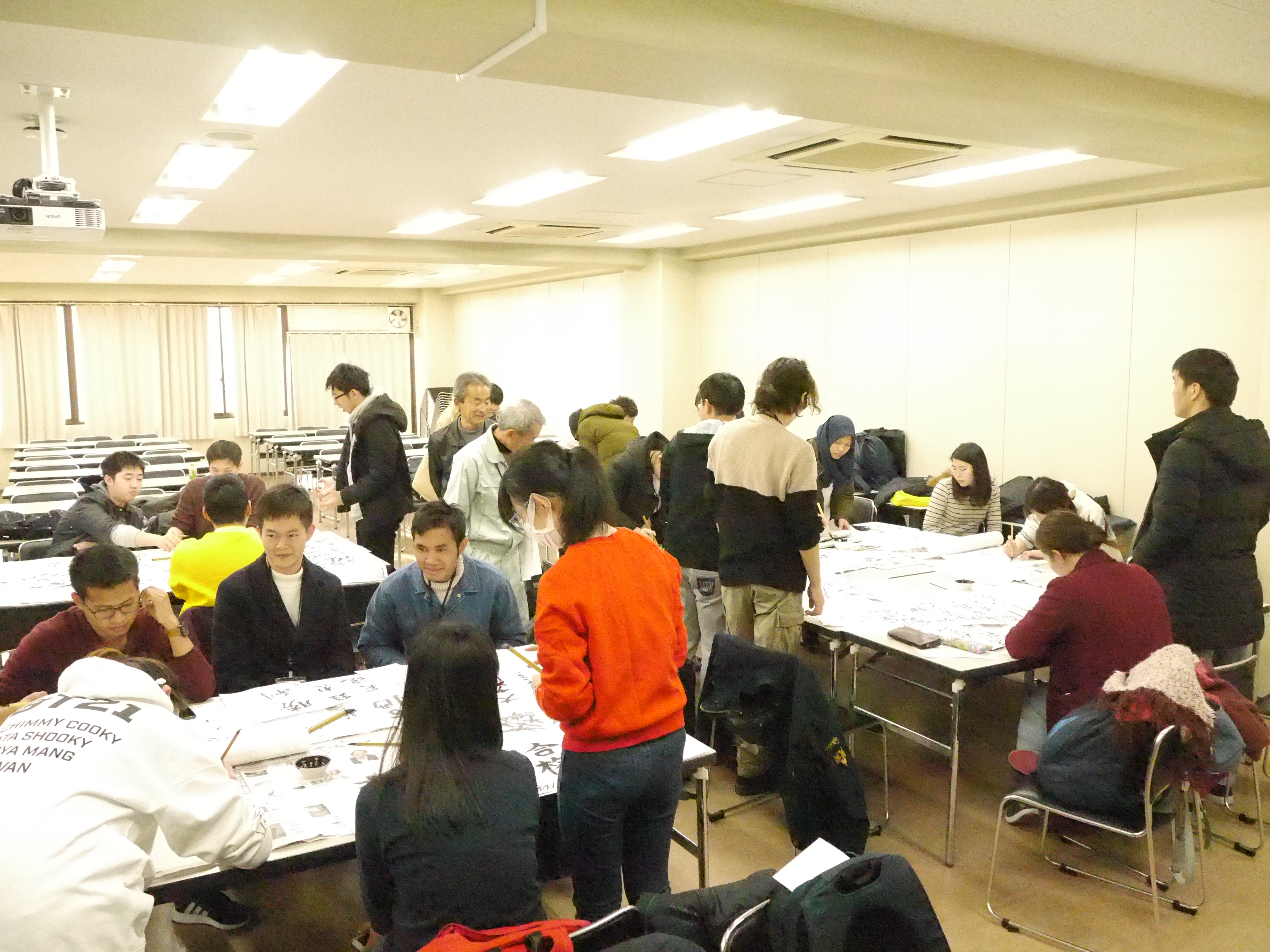 今年の目標や抱負を皆さん思い思いに書き出していました。 先生も多数参加し、留学生に見本を示してくれました。