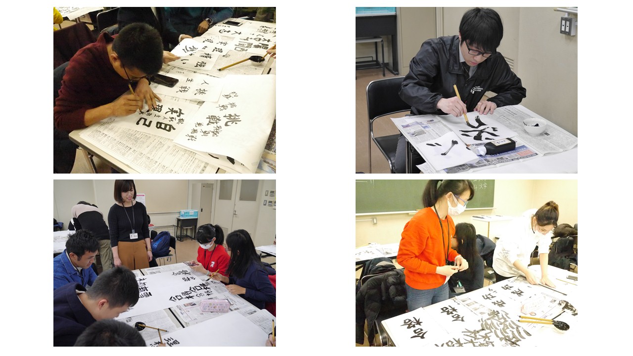 皆さん、こんにちは。 今日は今年最初の留学生対象の日本語コミュニケーション授業で行われた 書き初めの様子をお伝えします(^_-)