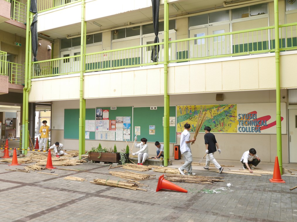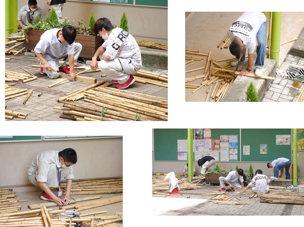 実習内容は、既設の壁に竹を取付け、竹を加工して仕上げるというものです🤗