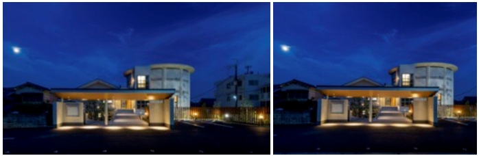 夕暮れ時になると円形折上天井が黄金色に輝き、まさに新しい空間となります。
