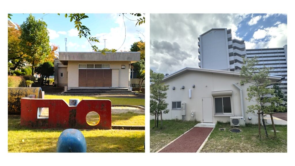 さらに、阪急「南千里駅」から歩いて千里ニュータウンプラザで歴史を学び、そのあと、新しい高層団地と集会所、そして千里ニュータウン初期の団地と集会所を見比べたり、造成前の敷地状況もチェックしてきました!