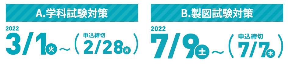 対策講座は「学科試験対策講座」「製図試験対策講座」の2つをご用意しています😉
