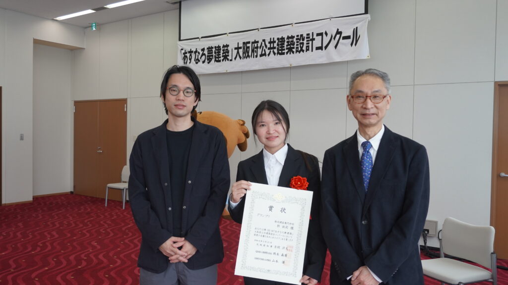 さて今回は、大阪府が主催する「第35回 あすなろ夢建築 大阪府公共建築設計コンクール」にて、本校の建築学科1年生、郭さんが、応募総数202点の中から見事グランプリ(最優秀賞)を受賞しました!