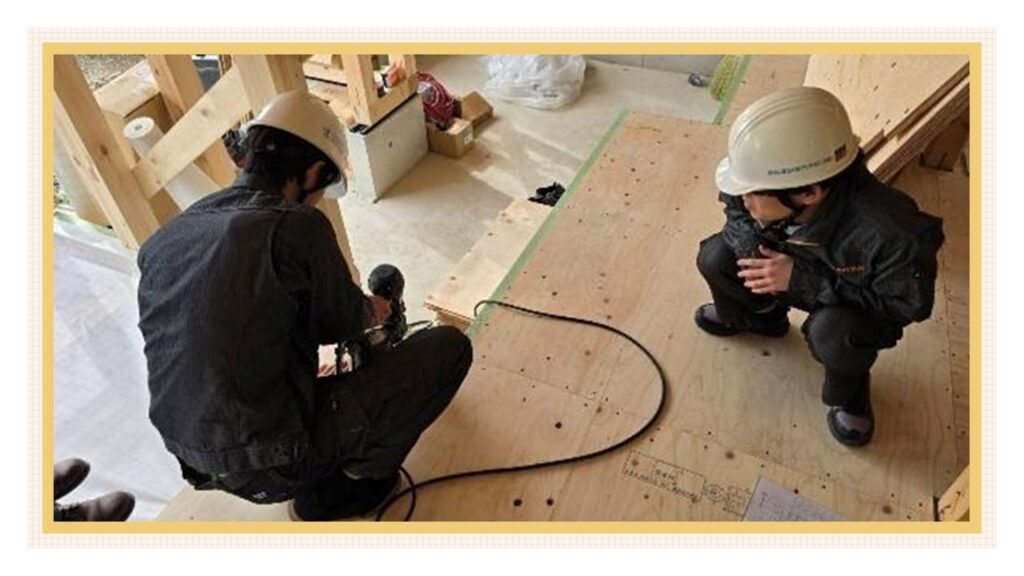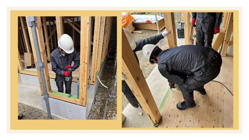 1階部分の床張りとポールダウン金物の取り付けをさせていただきました✨