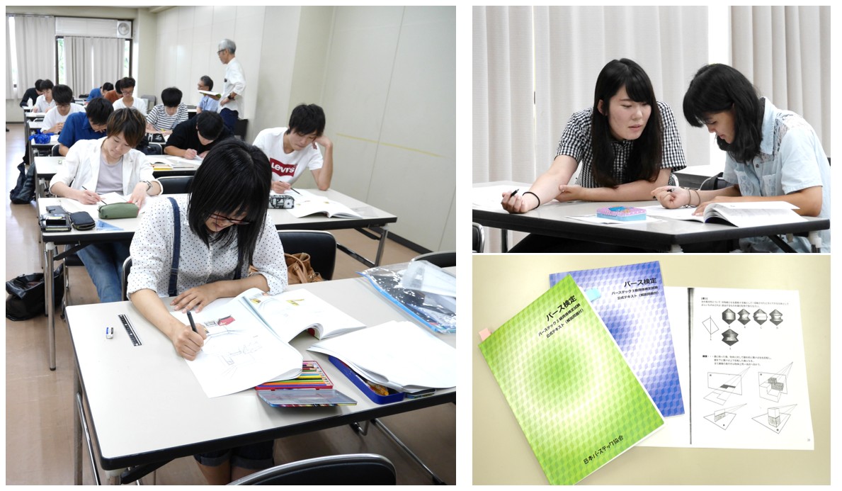 日本パーステック協会より講師の先生にお越しいただき、実演を交えながら 講義をしていただきました。 年末のパース検定受験に向けて、みんな必死に取り組んでいましたヨ~ヾ(゜v ゜*)ノ