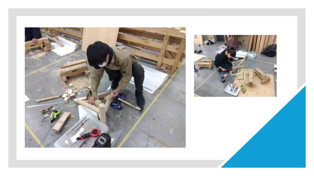 授業で行った通りに墨付け、加工、組み立てを時間内に行っていきます✨