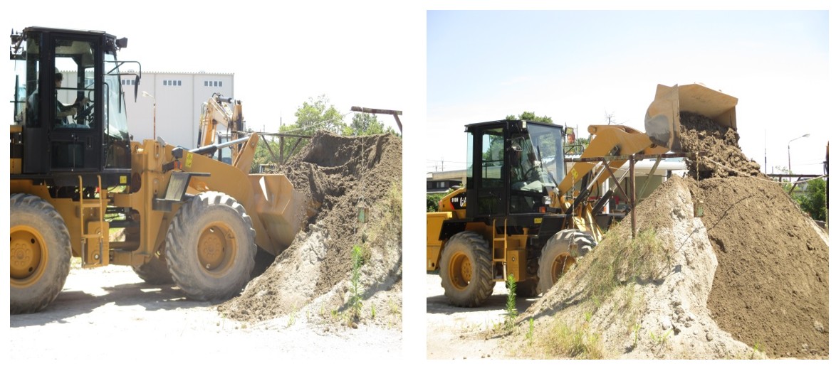 積み込み等に利用する機械で、今回は土をすくって積み上げます。