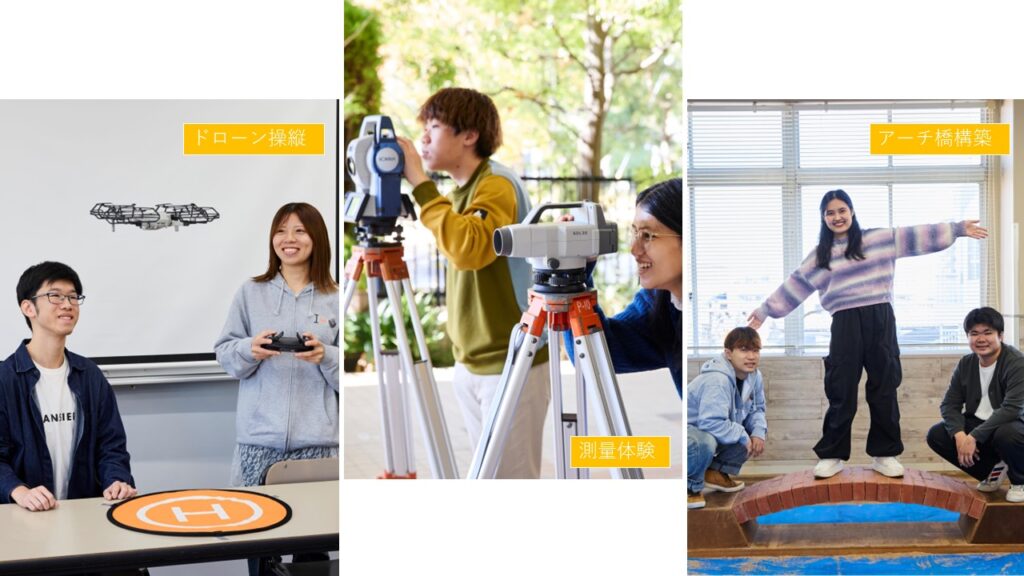 土木分野: ドローン操縦 / 測量体験 / アーチ橋構築