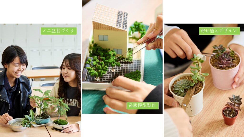 造園分野: 寄せ植えデザイン / 造園模型製作 / ミニ盆栽づくり