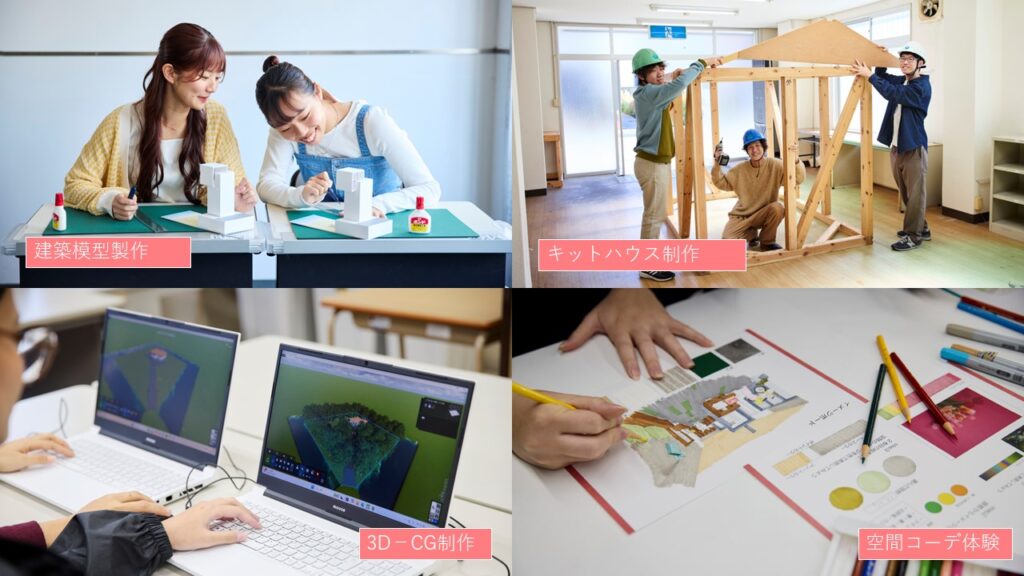 建築分野: 模型製作 / 空間コーデ体験 / 3DCG制作 / キットハウス制作