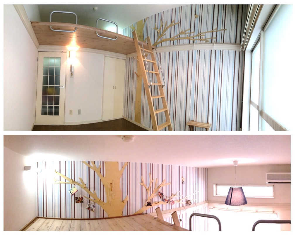 壁面にデザインされた「白樺の木」の制作は苦戦しましたが、その甲斐あって仕上がりも立派です!!