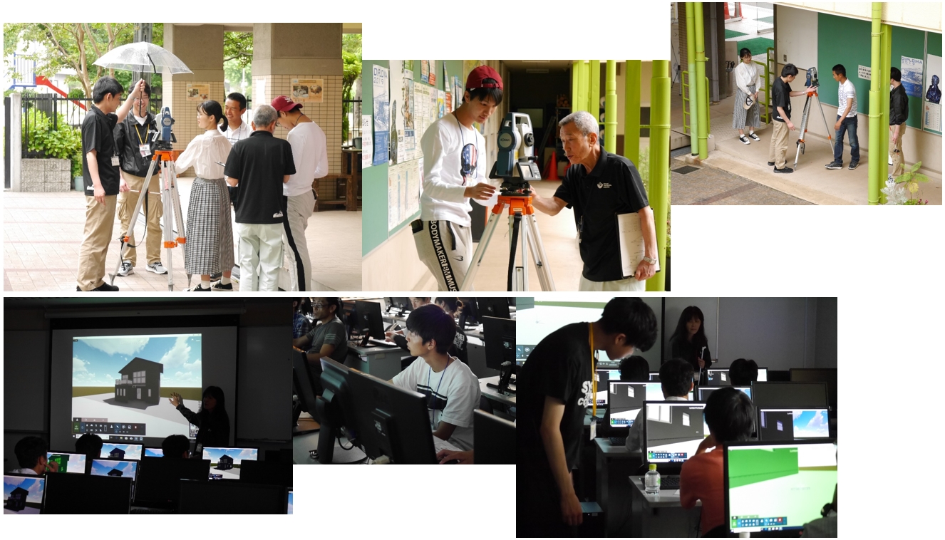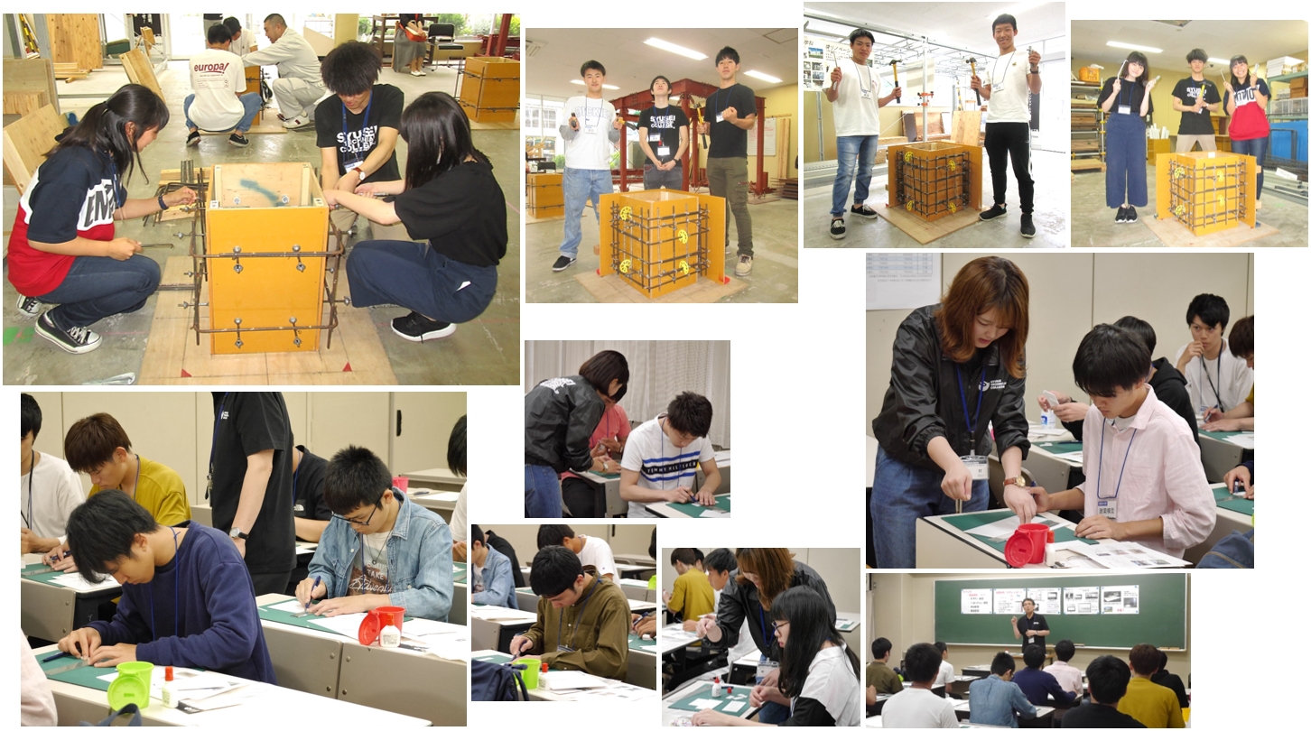 先生や学生スタッフ(在校生)と一緒に建設を体験してみたり、