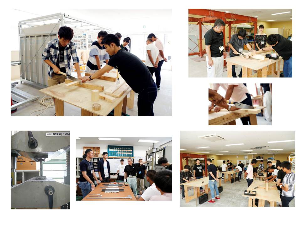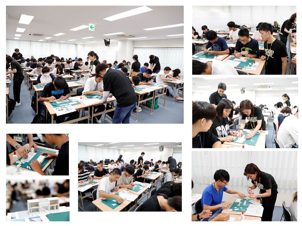 「建築、インテリア、土木、造園」の各分野・体験に分かれ、ものづくり授業です!